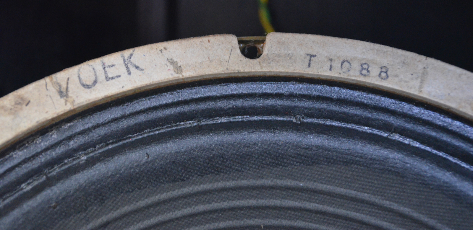 One of the Celestions, released from the baffle but not disconnected, bears the date code "_0EK". The first numeral is unreadable. "EK" signifies May 1965, the day date either the 10th, 20th, or 30th.