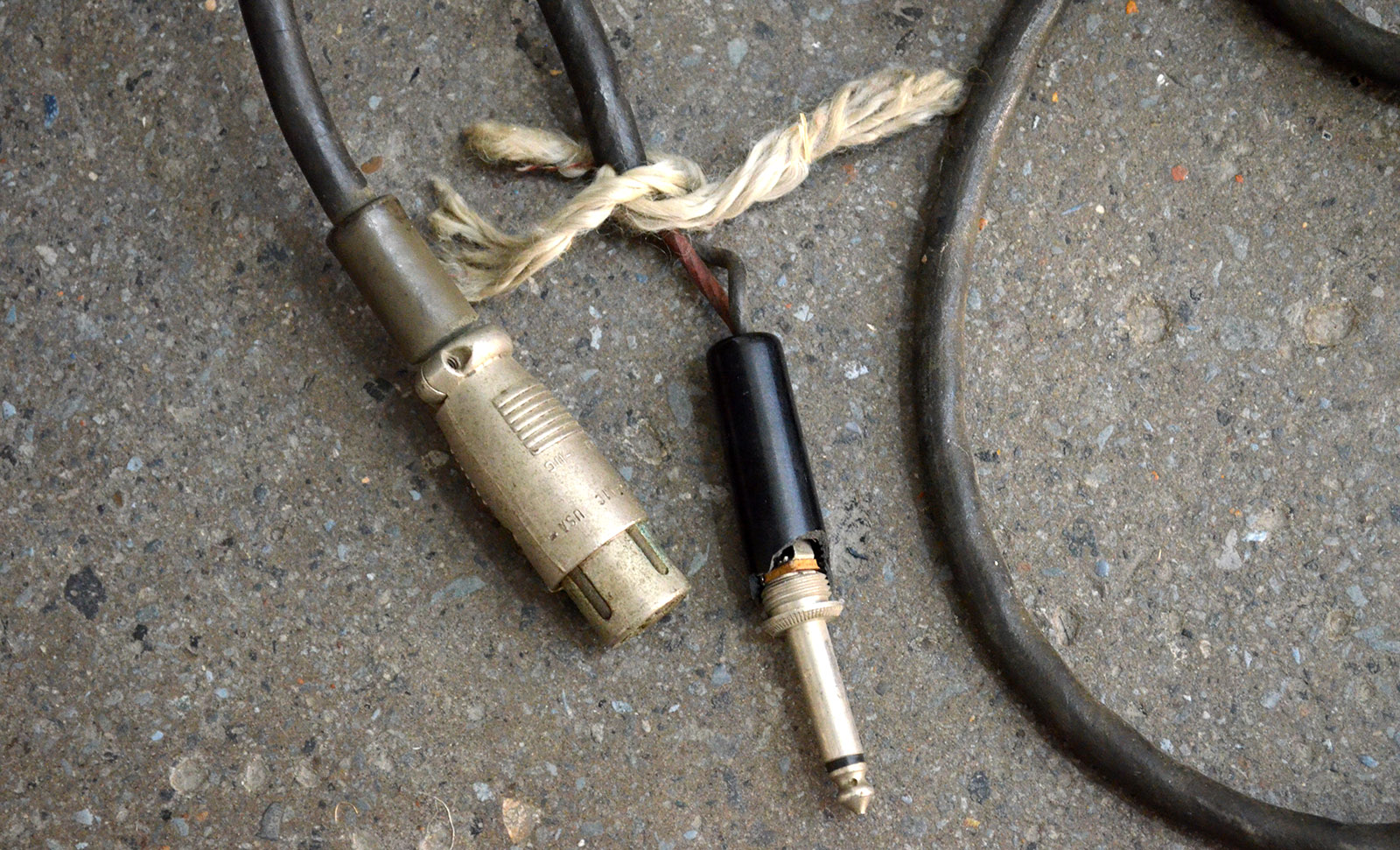 The speaker lead may be the original - rubberised two core cable (red and black) wrapped in cloth. One Cannon female connector remains, the other now being an old jack plug.