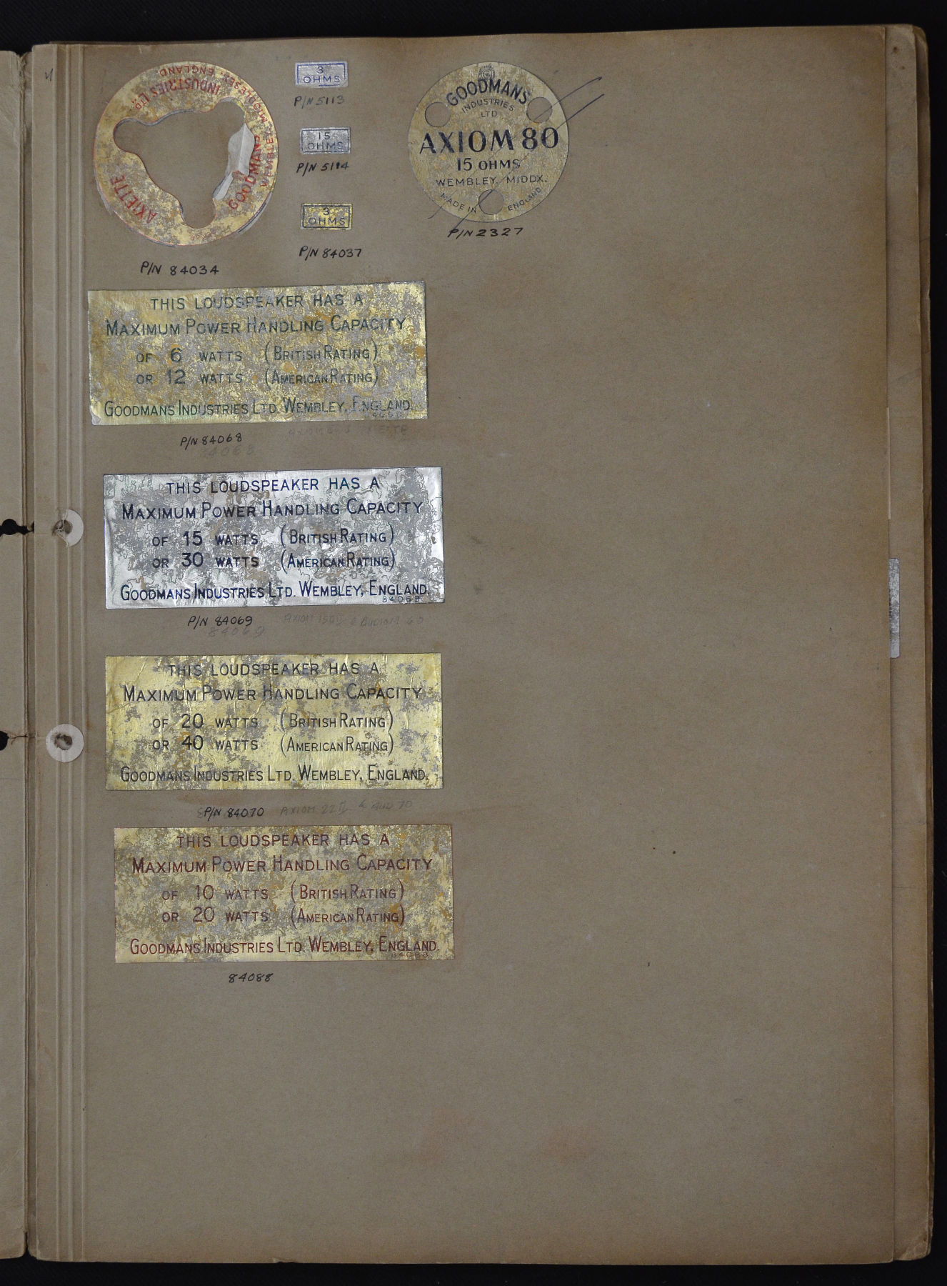 Contents > Schematics, Boxes, etc > A volume of Goodmans speaker and box stickers