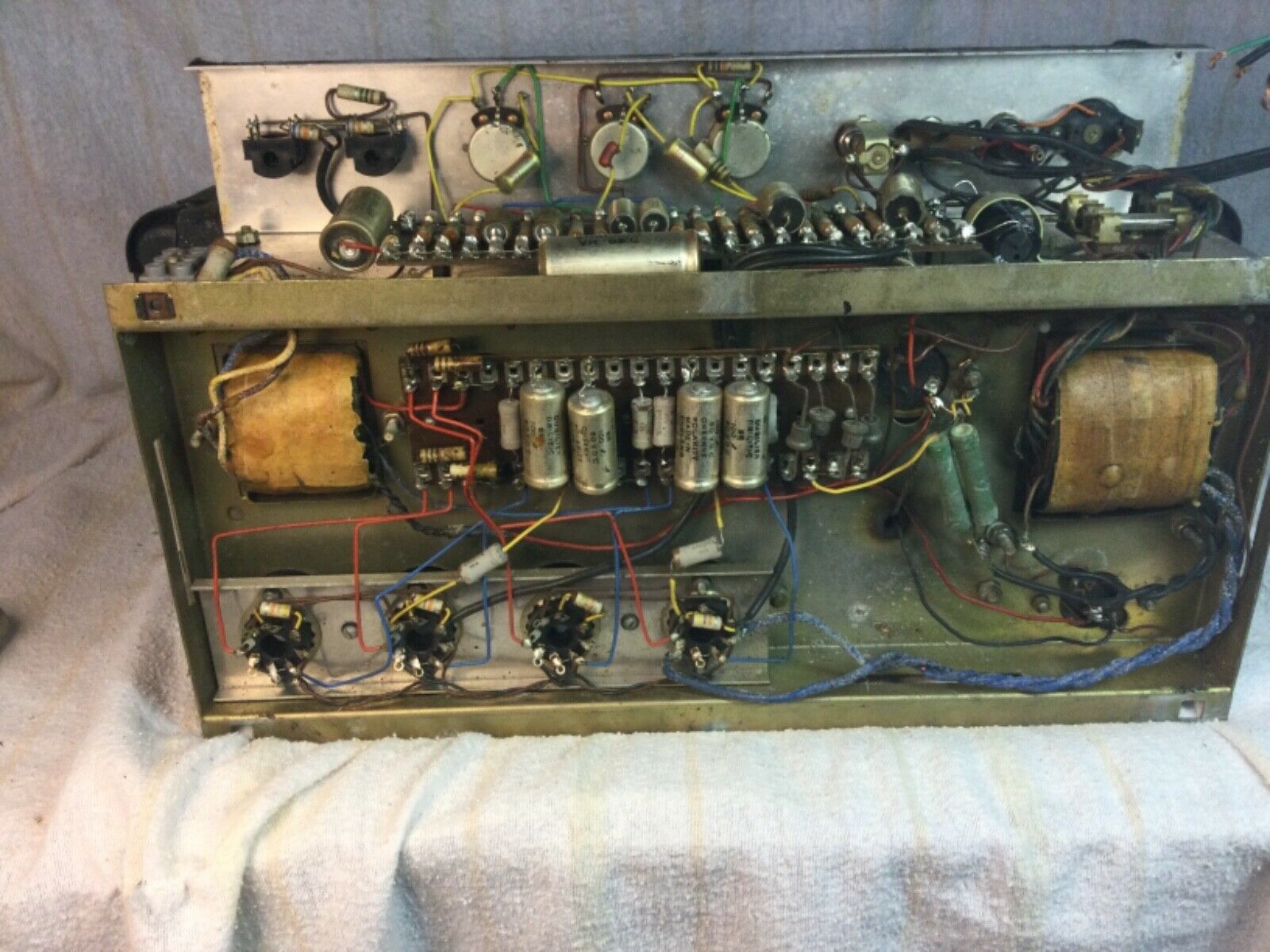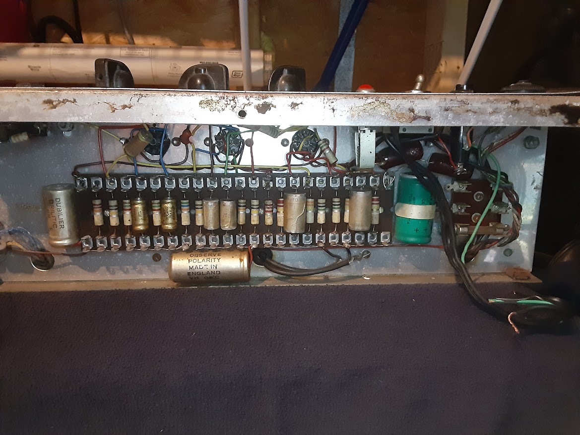 One of the gold-coloured 32uf Dubilier capacitors in the preamp has the date code "VH" = August 1964 for its manufacture.