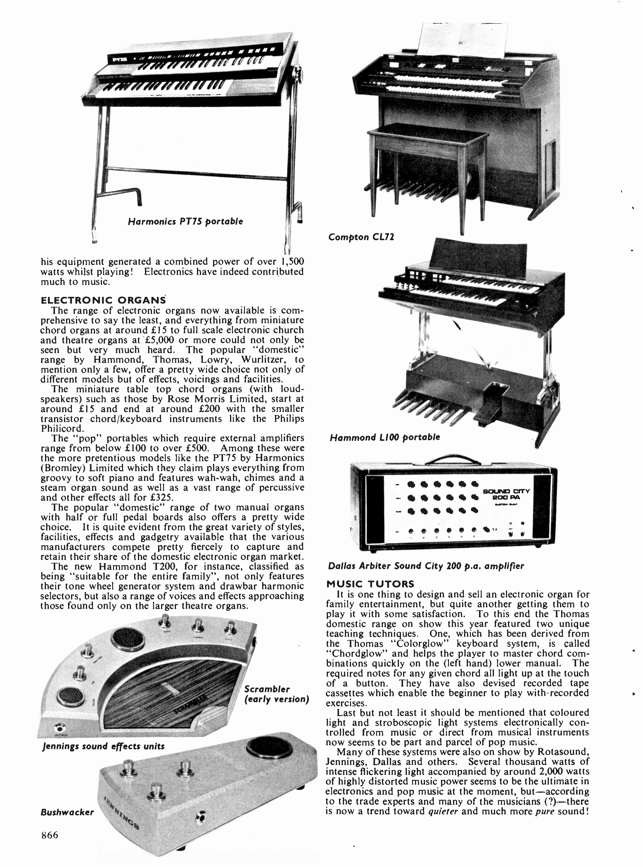 Published in "Practical Electronics" magazine, October 1969. F.C. (Fred) Judd, the reviewer, had worked in the field of musical electronics since at least 1963, and may have been an admirer of Jennings innovations.