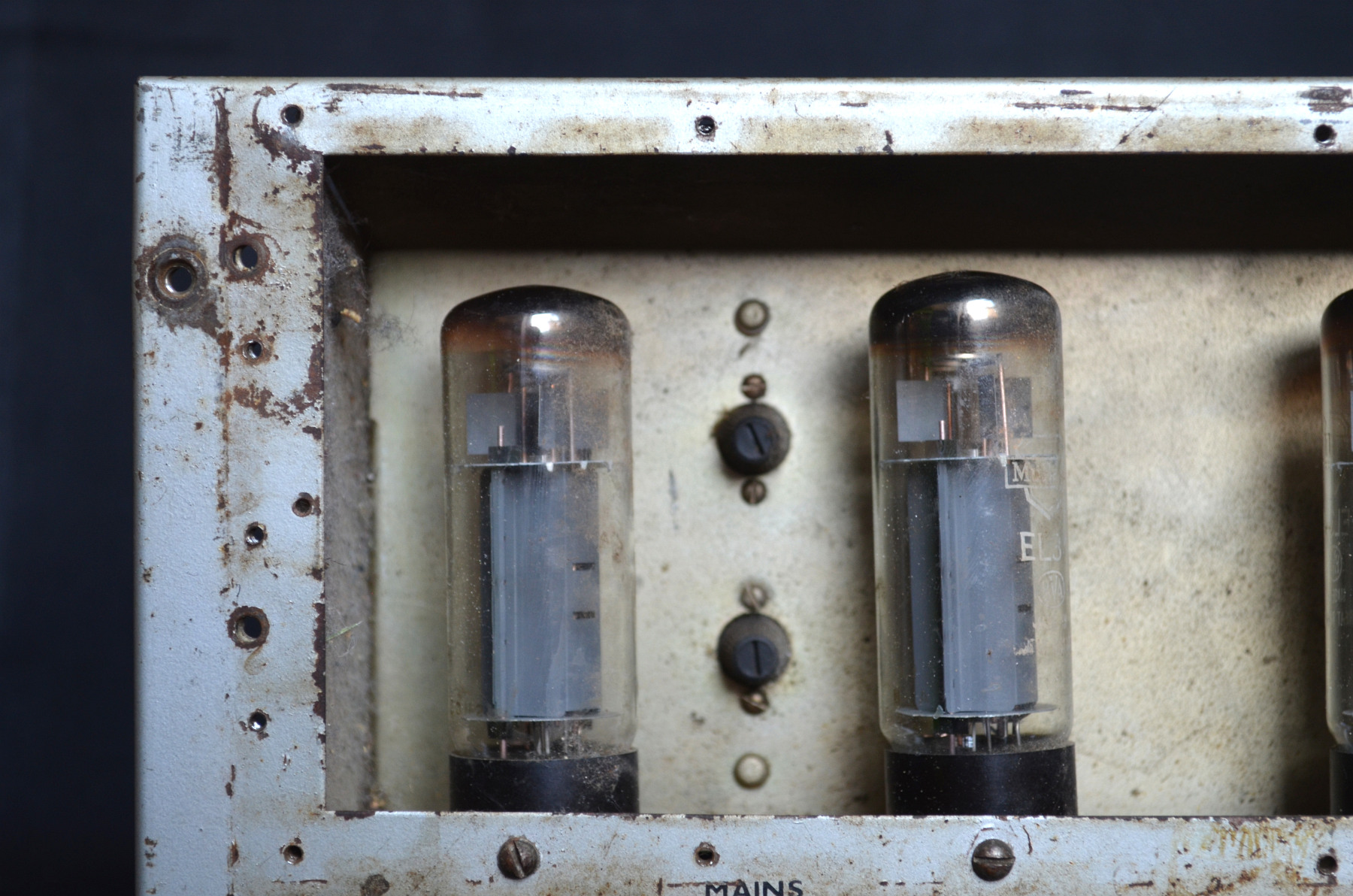 The transformers are made by Drake. Few relevant component date codes are visible at the moment in the power section. A replaced capacitor has "69/11". Alan Pyne, who serviced the amp in 1979, replaced the original EL34s with Mullards (XF2s) from 1971.