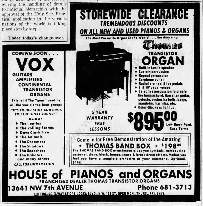 "Miami Herald", 7th March. House of Pianos and Organs.