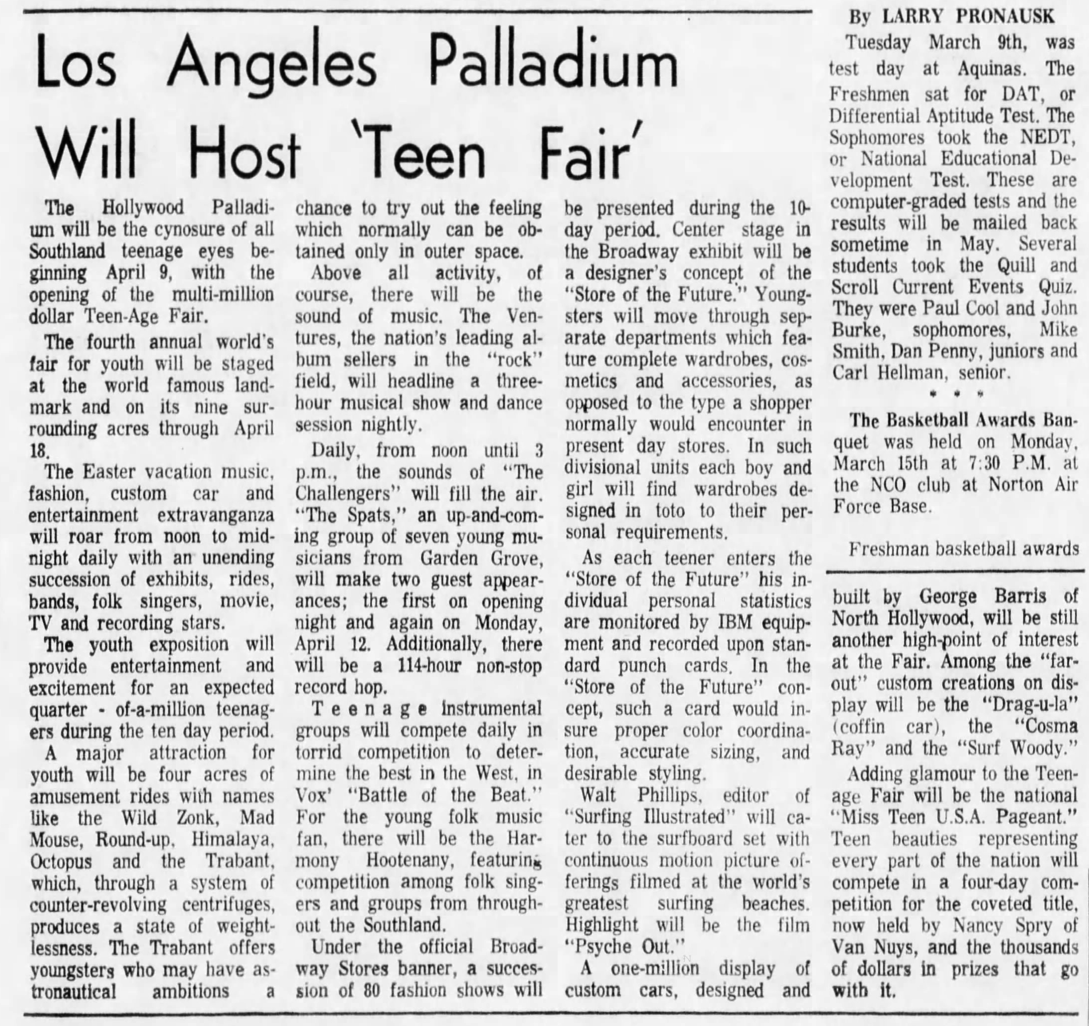 "San Bernardino County Sun", California, 27th March. See above, San Mateo Times, and this page for more on the "Teen Fair".