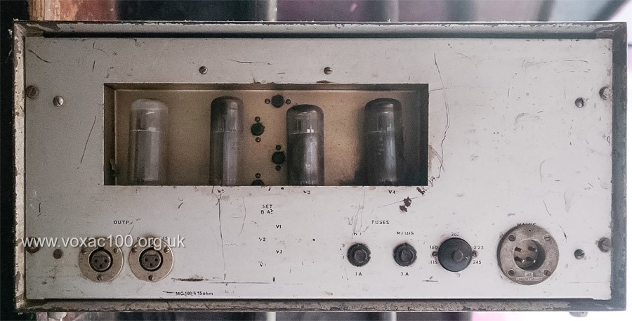 The power section of a MC100/6 from early 1967. In relation to the earlier amp a few differences of construction and one or two necessary changes to the circuit, otherwise identical.