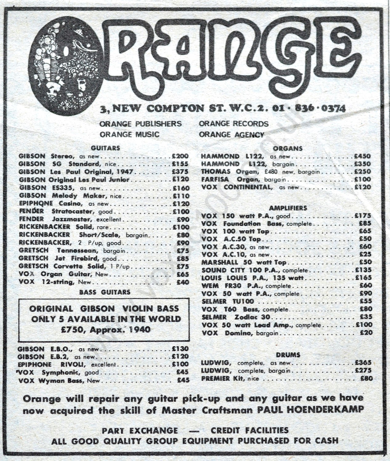 "Melody Maker" magazine, 19th April, 1969. The shop had the amp until the 26th of May. In the advert of 31st May, the MC150 has gone.