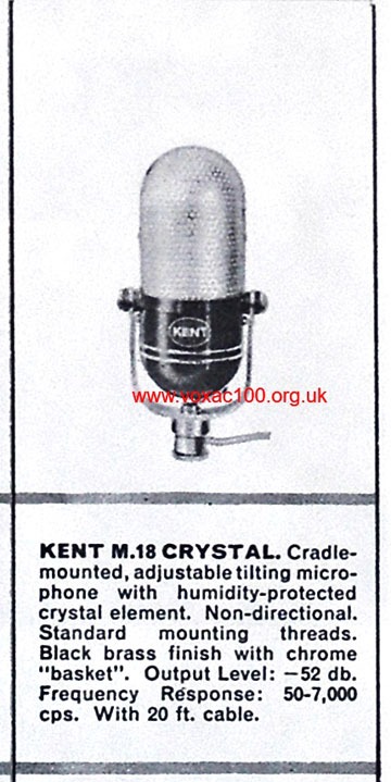 Microphones bought in from "Kent", which was based in the USA, form around half the roster represented. The models, most described as being "non-directional" (= "omni directional"), are: