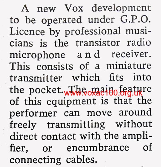 Thanks to Martin, a picture of a superb Vox Radio Microphone set, probably early 1965.