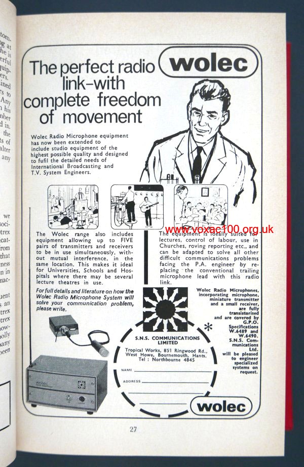 Late 1965, advert for the Wolec system, externally very familiar somehow, marketed by SNS of Bournemouth. SNS later made amps used by Slade.